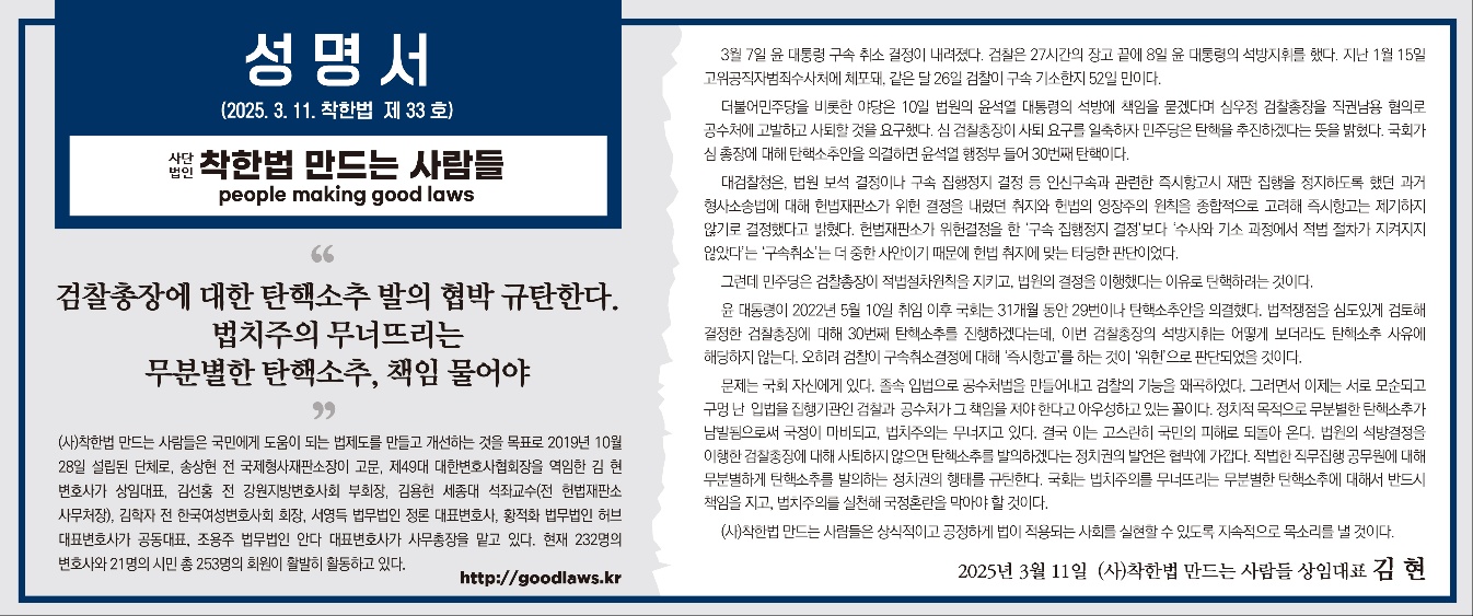 착한법 만드는 사람들의  자문위원인  김용헌 변호사(前 헌법재판소 사무처장)가  KT 이사회 의장 및 이사후보추천위원회 위원장으로 선임되었습니다.<관련기사>김용헌(사법연수원 11기) 법...