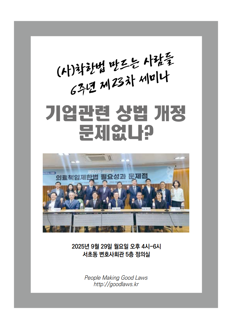 착한법 제23차 세미나 개최 <기업관련 상법 개정 문제없나?>
